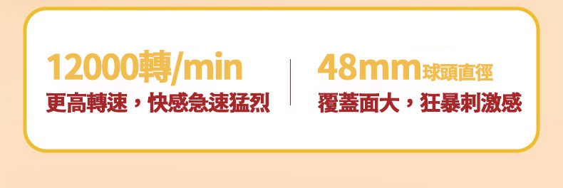 超強震動12000轉/min急速猛烈,48mm球頭直徑,覆蓋面大狂暴刺激感